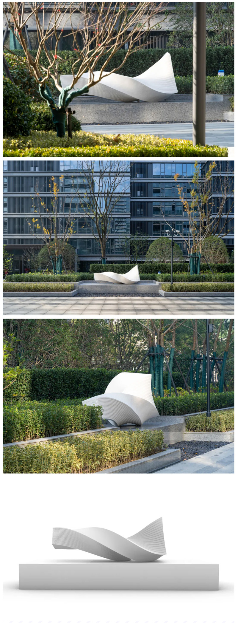 本案受綠城中國委托,為這個頂級復(fù)合型社區(qū)內(nèi)的住宅區(qū)和商業(yè)區(qū)設(shè)計公共雕塑。在設(shè)計定位上,設(shè)計組秉持對空間溫柔的造物理念,力圖展現(xiàn)出寧波這座城市的國際視野、城市精神及生活美學(xué)。
