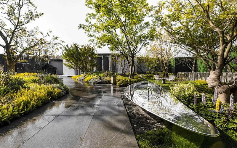 景觀的鏡面水景更像是一座展臺,倒映著藝術(shù)館里的生活畫卷。