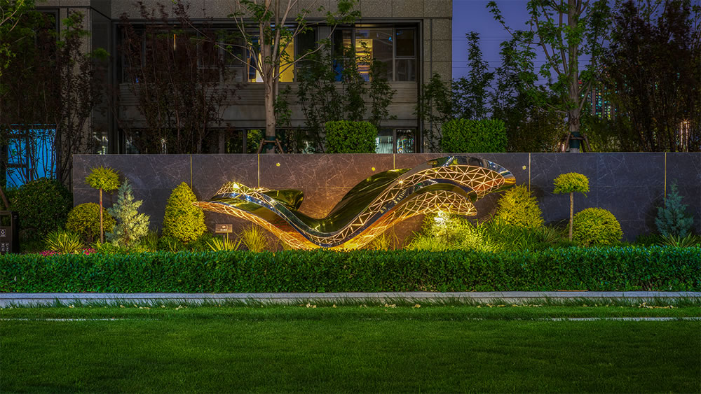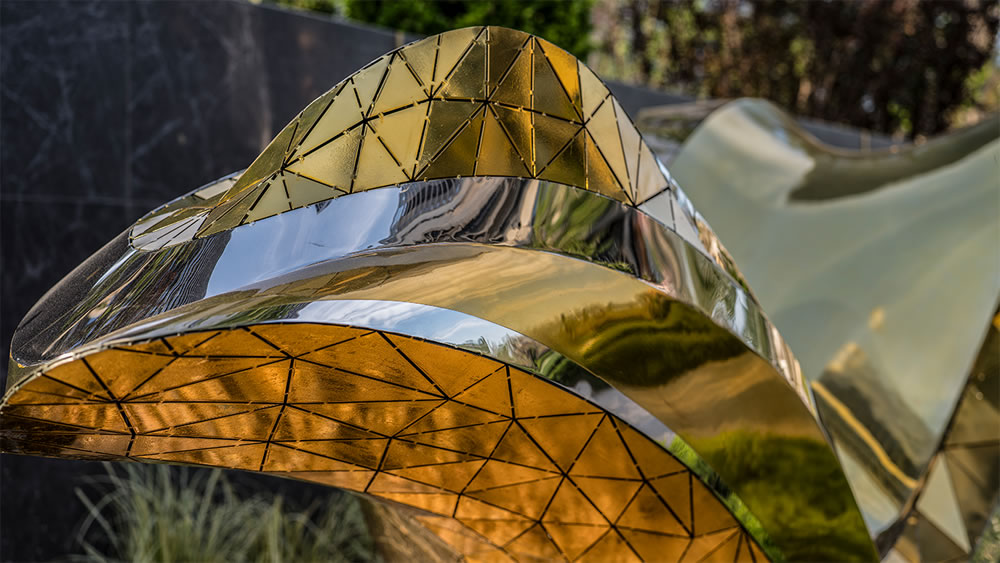 以波浪形態(tài)為靈感,選用金色材質(zhì),猶如一道凝固的流光,靜謐中蘊藏動勢。